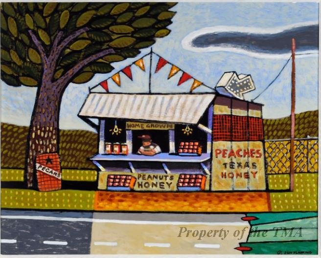 Jon Flaming, Fruit Stand, East Texas, 2005, acrylic on Masonite, 23.5 inches X 29.25 inches, Tyler Museum of Art, Tyler, Texas
