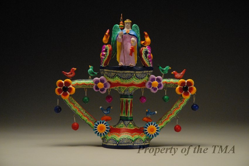 Heriberto Castillo Orta, Incense Burner with San Rafael, 1999-2000, Clay, Gesso, Wire, Acrylic Paint, 4 x 12¾, Tyler Museum of Art, Barrio de San Martin, Izucar de Matamoros, Puebla, Mexico.