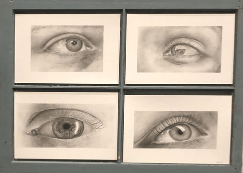 Mario Barrios, class of 2021 – 2022, graphite on paper, framed in a window, Cumberland Academy High School.