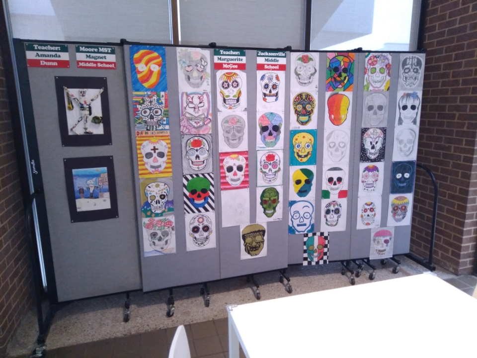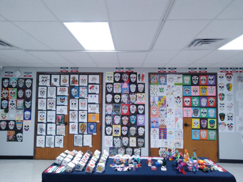 Every year, the Tyler Museum of Art holds a student exhibition for 5th through 8th grade middle school students in the East Texas area. The goal of the exhibition is for students to learn about the cultural festivities of Día de los Muertos. Then, the students create artworks that exhibits the cultural iconography of the holiday. When the artworks are completed, the teachers will select the pieces that will be exhibited in the Education Gallery.