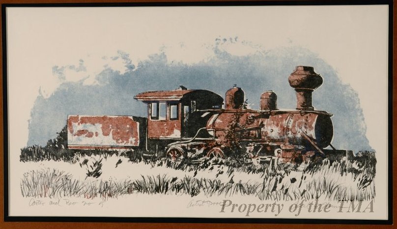 - This piece depicts an old, rusted train in the middle of a large field. The train is a WT Carter and Bro. No. 5 model.
