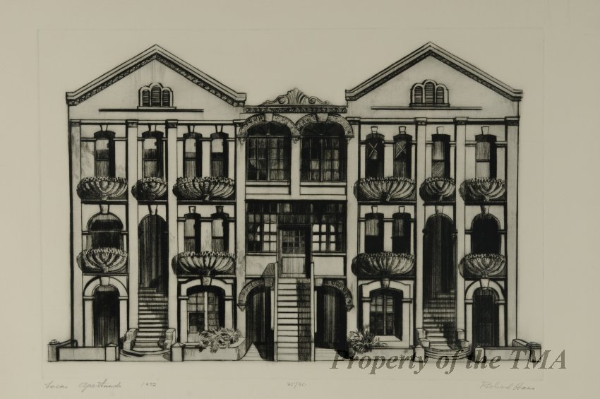 This lesson plan contains the National Learning Standards for Visual Arts and the Texas TEKS for Elementary, Middle, and High School art teachers. Students will learn about Richard Haas’ methods of representing architecture in his print Lucas Apartments. Then, the class will discuss how architecture is catalogued in both the past and the present. Afterwards, the students will select a historical building in their town to research and photograph. Next, each student will write a response to questions regarding their chosen building.